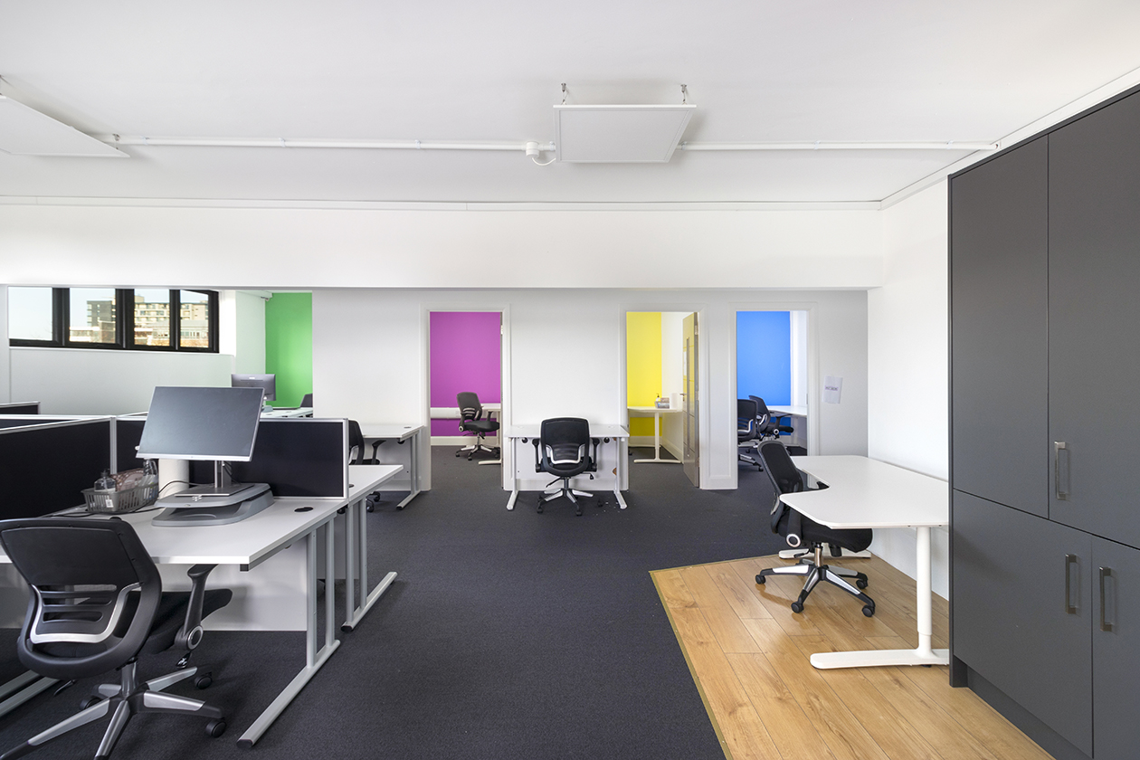 Available now, this ground floor office space is 1700 sq feet making it suitable for a team of 20-30 people. The Building is full of life and character as well as an onsite receptionist and a popular canteen available to all users of the building.