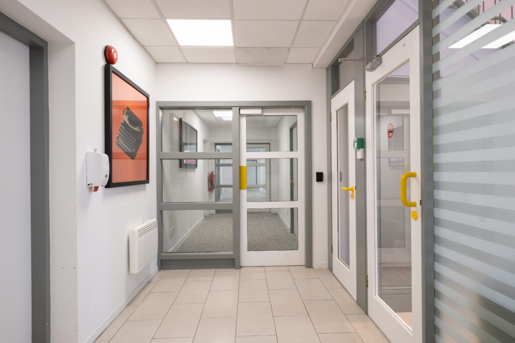 This newly renovated ultra-modern office space is perfect for 2! Measuring 130 sq ft, it comfortably fits 2 desks. The shared kitchen area is fully equipped and there is space to eat and network with your fellow building tenants. There is a bookable meeting room with 2 hours per week included in the price. 1 parking space is included with additional spaces available to rent on request.