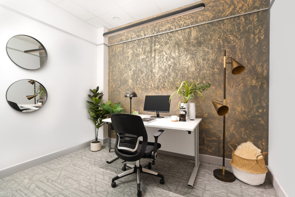 A modern and light 100 sq ft office space comfortably accommodating 1 desk. Our 1 desk offices are a great option for business owners and virtual workers opting to work away from their home environment. Enjoy the peace and quiet of your own office but be sure to make use of the fabulous shared kitchen area and bookable meeting rooms - you’ll get 2 hours per week included in the price. 1 parking space is included
