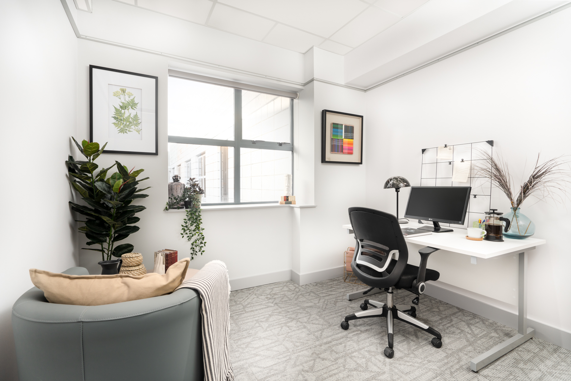 This small and perfectly formed office space accommodates 1 desk - it is the perfect space for small business owners or virtual workers opting to work away from their home environment. Enjoy the peace and quiet of your own office but be sure to make use of the fabulous shared kitchen area and bookable meeting rooms - you’ll get 2 hours per week included in the price. 1 parking space is included.